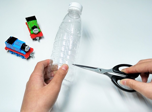 1.在矿泉水瓶侧面靠下的位置,用剪刀扎一个洞。