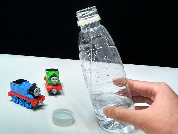 3.拧紧瓶盖,再把按着洞的大拇指松开。哇,竟然不漏水!